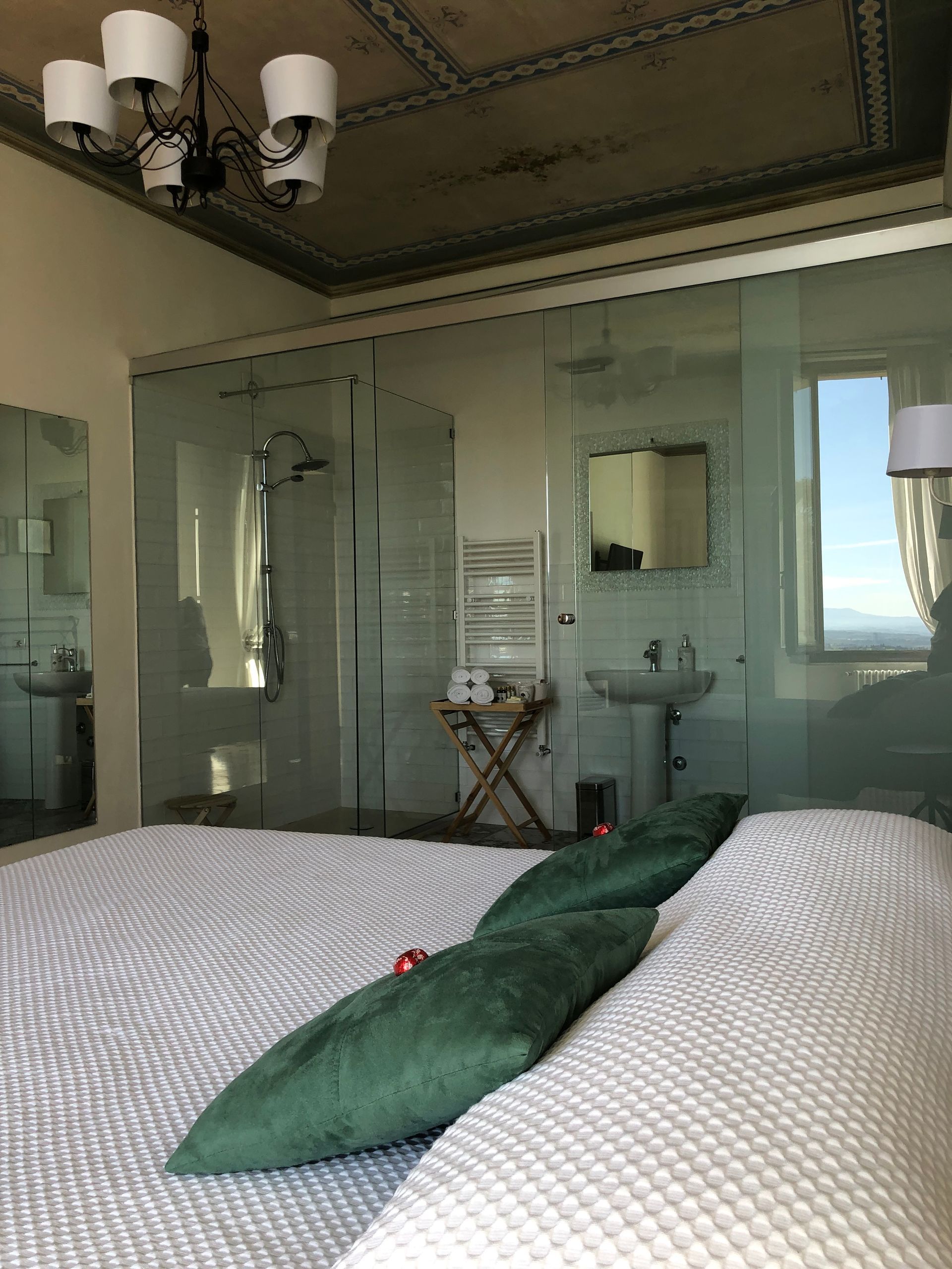 A very nice room, over the garden with a beautifull view of the tuscan countryside.